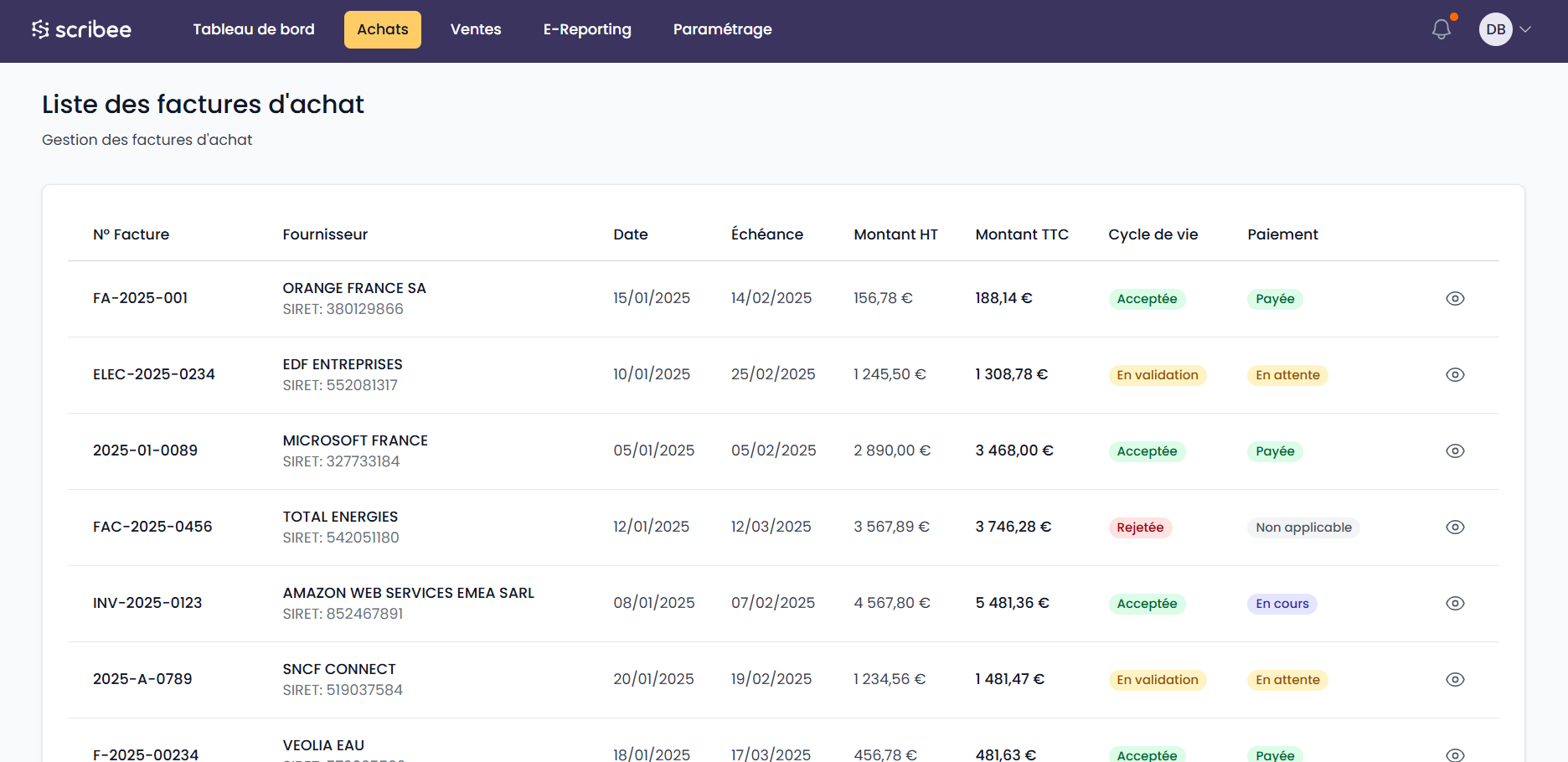 scribee s’intègre à vos outils existants, sans chamboulement ni projet SI long et complexe. Le paramétrage est adapté à votre fonctionnement, complété par une formation ciblée des équipes comptables et financières, sur les process et la réglementation.