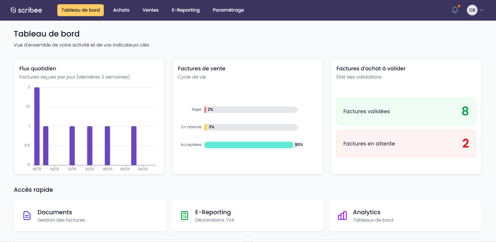 scribee est une Plateforme Agréée par l’État, pensée par des experts de la tech, de la finance et de la comptabilité pour répondre concrètement aux enjeux de la facturation électronique.